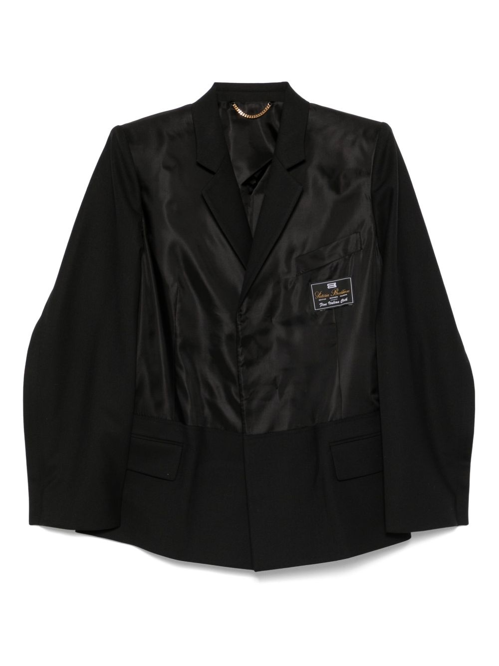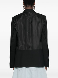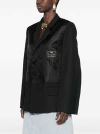 logo-tag blazer Highlights - Black - Concealed front button fastening - Shoulder pads - Two front flap pockets - Chest welt pocket Made in Italy Composition Outer: Polyester 53%, Virgin Wool 43%, Elastane 4% Lining: Cotton 70%, Polyamide 30% SIZE & FIT Model measurements Height 5 ft 10 in(1.77 m) Bust/Chest 32.28 in(82 cm) Hips 35.03 in(89 cm) Waist 25.19 in(64 cm) FittingInformation Designed to be unstructured, offering a loose fit throughout The internal shoulder pads offer a structured shape Made from a midweight fabric