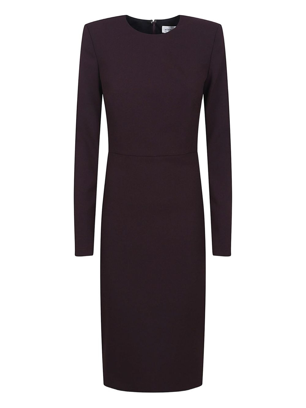 long-sleeve dress Highlights - Purple - Long sleeves - Rear zip fastening - Rear vent Imported Composition Polyester 54%, Wool 44%, Elastane 2% Washing instructions Dry Clean Only