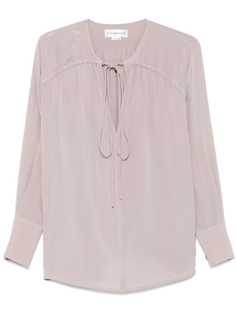New CDC blouse Highlights - Light purple - Front tie fastening - Long sleeves - Buttoned cuffs - Gathered detailing Imported Composition Silk 100% SIZE & FIT Model measurements Height 5 ft 10 in(1.79 m) Bust/Chest 31.88 in(81 cm) Hips 35.43 in(90 cm) Waist 23.62 in(60 cm) FittingInformation Designed to be unstructured, offering a loose fit throughout The adjustable drawstring means that you can adjust this piece’s fit to suit your comfort and preference Made from a lightweight non-stretch fabric