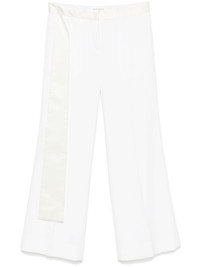 New Gigi trousers Highlights - White - Concealed front fastening - Two side slit pockets - Two rear welt pockets - Strap detailing Imported Composition Outer: Polyester 55%, Virgin Wool 45% Lining: Cotton 70%, Polyamide 30% SIZE & FIT Model measurements Height 5 ft 11 in(1.8 m) Bust/Chest 32.67 in(83 cm) Hips 36.22 in(92 cm) Waist 24.4 in(62 cm) FittingInformation Designed with a wide-leg cut, these trousers allow for a close fit at the waist and offer a loose and roomy fit over the leg Made from a midweight non-stretch fabric
