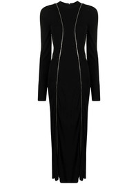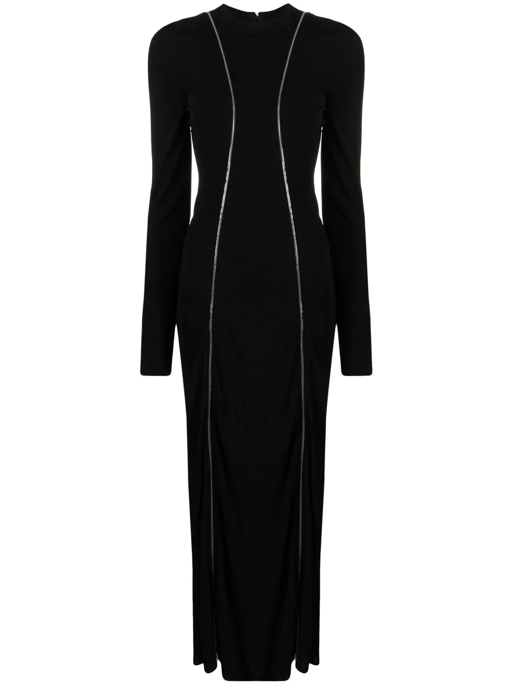 piped-trim detail dress black piped-trim detailing round neck long sleeves flared long length straight hem Imported Composition Viscose 100% SIZE & FIT Model measurements Height 5 ft 10 in(1.78 m) Bust/Chest 31.49 in(80 cm) Hips 35.43 in(90 cm) Waist 24.4 in(62 cm) Measurement HIPS 29.92 in(76 cm) LENGTH 53.14 in(135 cm) WAIST 23.62 in(60 cm) FittingInformation This piece fits true to size. We recommend you get your regular size Designed for a close fit at the bust, waist and hips Made with a mid-weight fabric Washing instructions Dry Clean Only