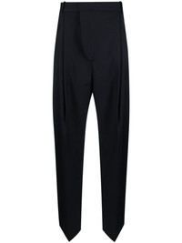 pleat-detailing wide-leg trousers Highlights - Midnight blue - Stretch-design - Twill weave - Pleat detailing - High waist - Concealed front fastening - Two side jetted pockets - Two rear welt pockets - Belt loops - Wide leg Imported Composition Outer: Polyester 53%, Wool 43%, Elastane 4% Lining: Cotton 70%, Polyamide 30% SIZE & FIT Model measurements Height 5 ft 10 in(1.77 m) Bust/Chest 31.1 in(79 cm) Hips 34.64 in(88 cm) Waist 24.8 in(63 cm) FittingInformation Designed with a wide-leg cut, these trousers allow for a close fit at the waist and offer a loose and roomy fit over the leg Made from a midweight stretch fabric, this piece offers elasticity and flexibility when worn This piece fits true to size – take your usual size