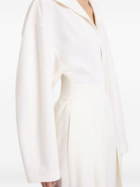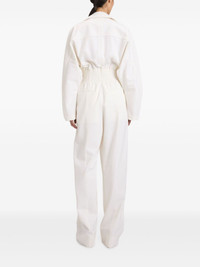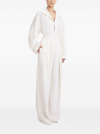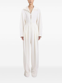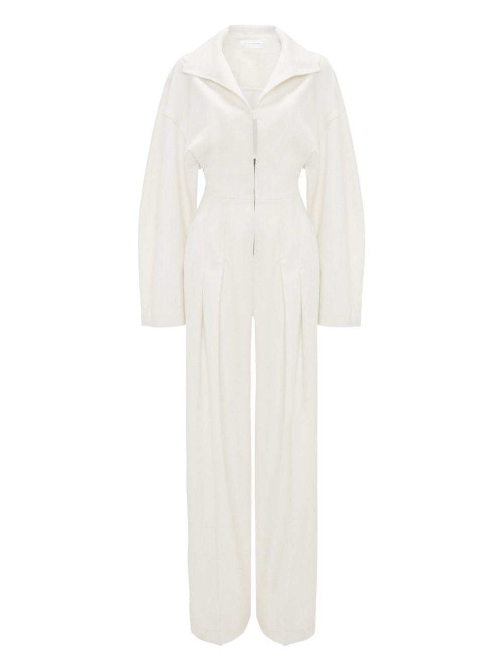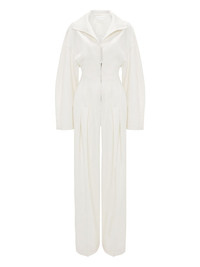 pleated tab-detail jumpsuit Highlights - Ivory - Central zip fastening - Tab detail - Pointed collar - Long sleeves - Pleated trousers Imported Composition Wool 50%, Polyester 50% Washing instructions Dry Clean Only