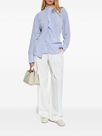 pleated wide-leg trousers Highlights - Ivory white - Pleated design - High waist - Wide leg - Hook-and-eye fastening Imported Composition Wool 50%, Polyester 50% Washing instructions Read Manufacturer Guidelines