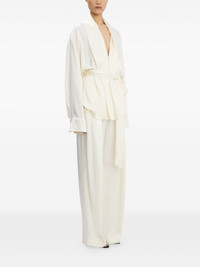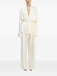 pleated wide-leg trousers Highlights - Ivory - Pleated front - Wide leg - High waist - Belt loops - Self-tie belt Imported Composition Polyester 53%, Virgin Wool 43%, Elastane 4% Washing instructions Read Manufacturer Guidelines