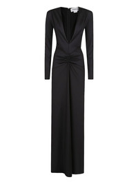 plunge-neck gathered maxi dress Highlights Imported Composition Polyester 90%, Spandex/Elastane 10% SIZE & FIT FittingInformation Designed for a slim fit that sits just away from the body offering a close yet comfortable fit Made from a midweight stretch fabric, this piece offers elasticity and flexibility when worn