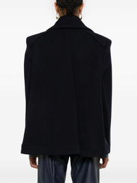 pointed-shoulder peacoat Highlights - Navy blue - Virgin wool - Shoulder pads - Double-breasted button fastening - Wide notch lapels - Long sleeves - Two front welt pockets - Full lining - Straight hem Imported Composition Outer: Virgin Wool 100% Lining: Viscose 100%, Cotton 70%, Polyamide 30% SIZE & FIT Model measurements Height 5 ft 10 in(1.77 m) Bust/Chest 33.07 in(84 cm) Hips 37 in(94 cm) Waist 24.8 in(63 cm) FittingInformation Designed for a boxy fit, intended for a loose fit throughout The internal shoulder pads offer a structured shape Made from a midweight non-stretch fabric