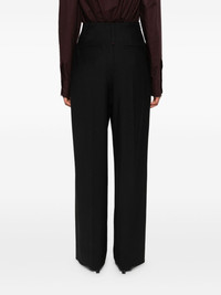 pressed-crease trousers Highlights - Black - Concealed front fastening - Belt loops Imported Composition Outer: Polyester 53%, Virgin Wool 43%, Elastane 4% Lining: Cotton 70%, Polyamide 30% SIZE & FIT Model measurements Height 5 ft 10 in(1.77 m) Bust/Chest 33.07 in(84 cm) Hips 37 in(94 cm) Waist 24.8 in(63 cm) FittingInformation Designed with a cigarette cut, these trousers allow for a close fit at the waist and offer an unrestricted fit through to the ankle Made from a midweight non-stretch fabric Washing instructions Dry Clean Only