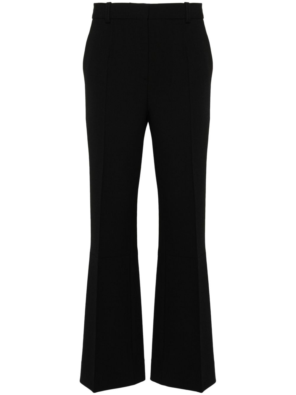 tailored cotton-blend flared trousers Highlights - Black - Textured finish - Belt loops at the waist - Raised seam detail - Two side slash pockets - Two rear welt pockets - Internal logo tag - Flared hem - Concealed front button, hook and zip fastening Imported Composition Outer: Polyester 45%, Virgin Wool 36%, Polyamide 16%, Elastane 3% Lining: Cotton 70%, Polyamide 30% SIZE & FIT Model measurements Height 5 ft 11 in(1.8 m) Bust/Chest 31.49 in(80 cm) Hips 36.61 in(93 cm) Waist 24.4 in(62 cm) FittingInformation Designed with a flared hem, these trousers allow for a close fit at the waist with a slim fit over the leg and widening towards the hem Made from a midweight stretch fabric, this piece offers elasticity and flexibility when worn This piece fits true to size – take your usual size