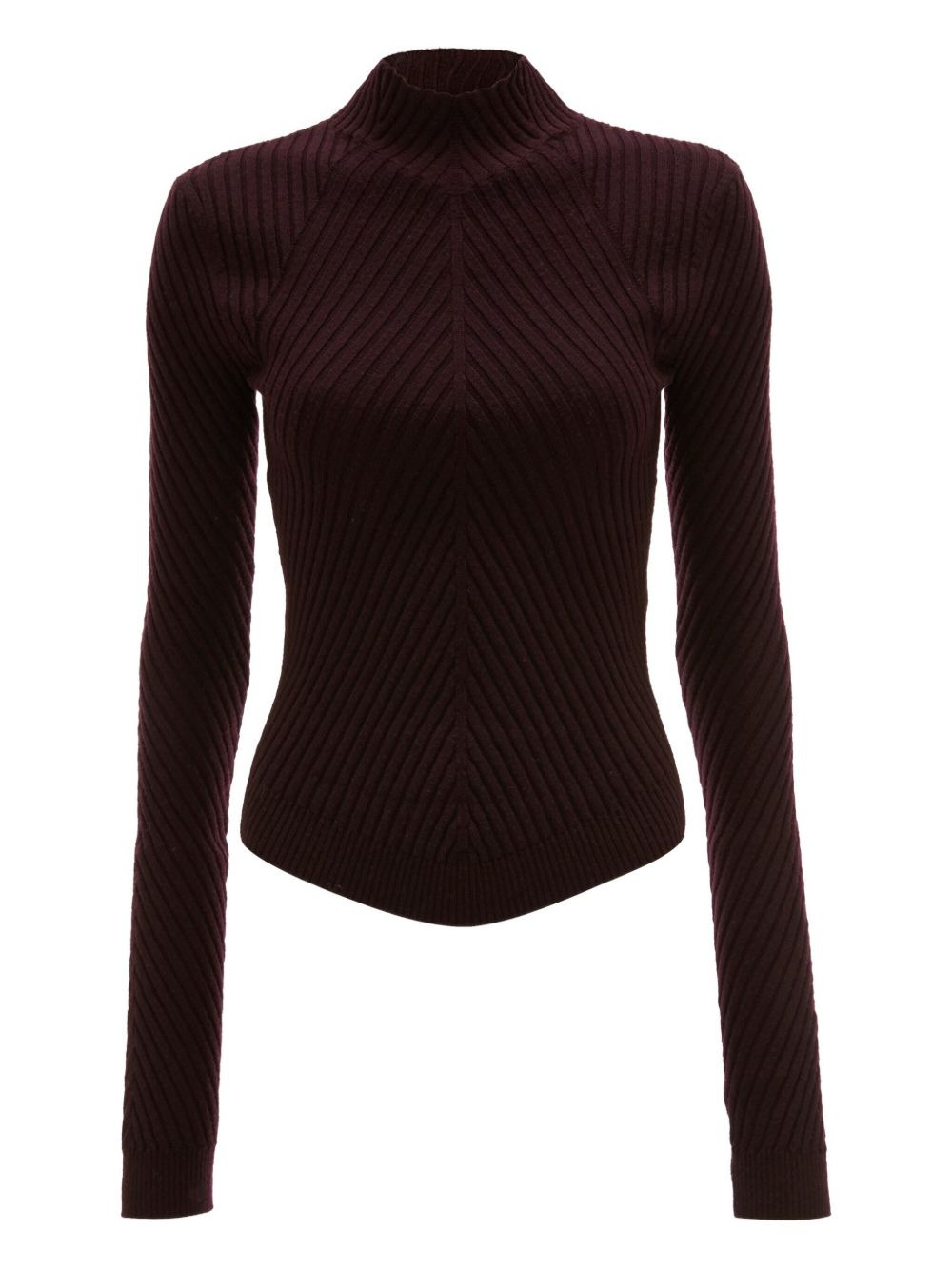 ribbed high-neck polo top Highlights - Burgundy - Ribbed knit - High neck - Long sleeves - Slim fit - Chevron pattern Imported Composition Merino 100% Washing instructions Read Manufacturer Guidelines