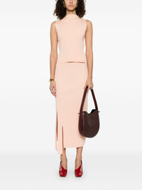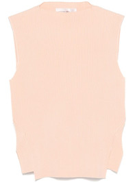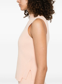 ribbed-knit vest Highlights - Peach pink - Mock neck - Sleeveless - Side slits Imported Composition Viscose 100% SIZE & FIT Model measurements Height 5 ft 10 in(1.79 m) Bust/Chest 31.88 in(81 cm) Hips 35.43 in(90 cm) Waist 23.62 in(60 cm) FittingInformation Designed for a slim fit that sits just away from the body offering a close yet comfortable fit Made from a midweight stretch fabric, this piece offers elasticity and flexibility when worn
