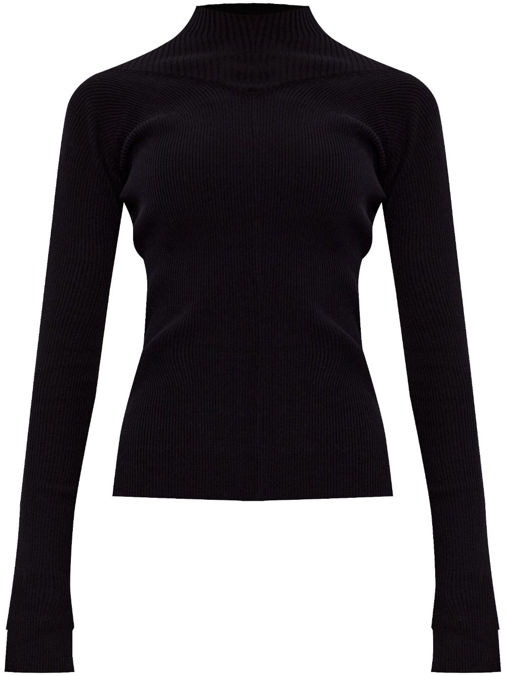 ribbed top Highlights - Black - High neck - Long sleeves - Straight hem Imported Composition Cotton 63%, Polyamide 34%, Elastane 3% SIZE & FIT FittingInformation Designed for a close fit throughout Made with a midweight knit, this piece offers some stretch Washing instructions Read Manufacturer Guidelines