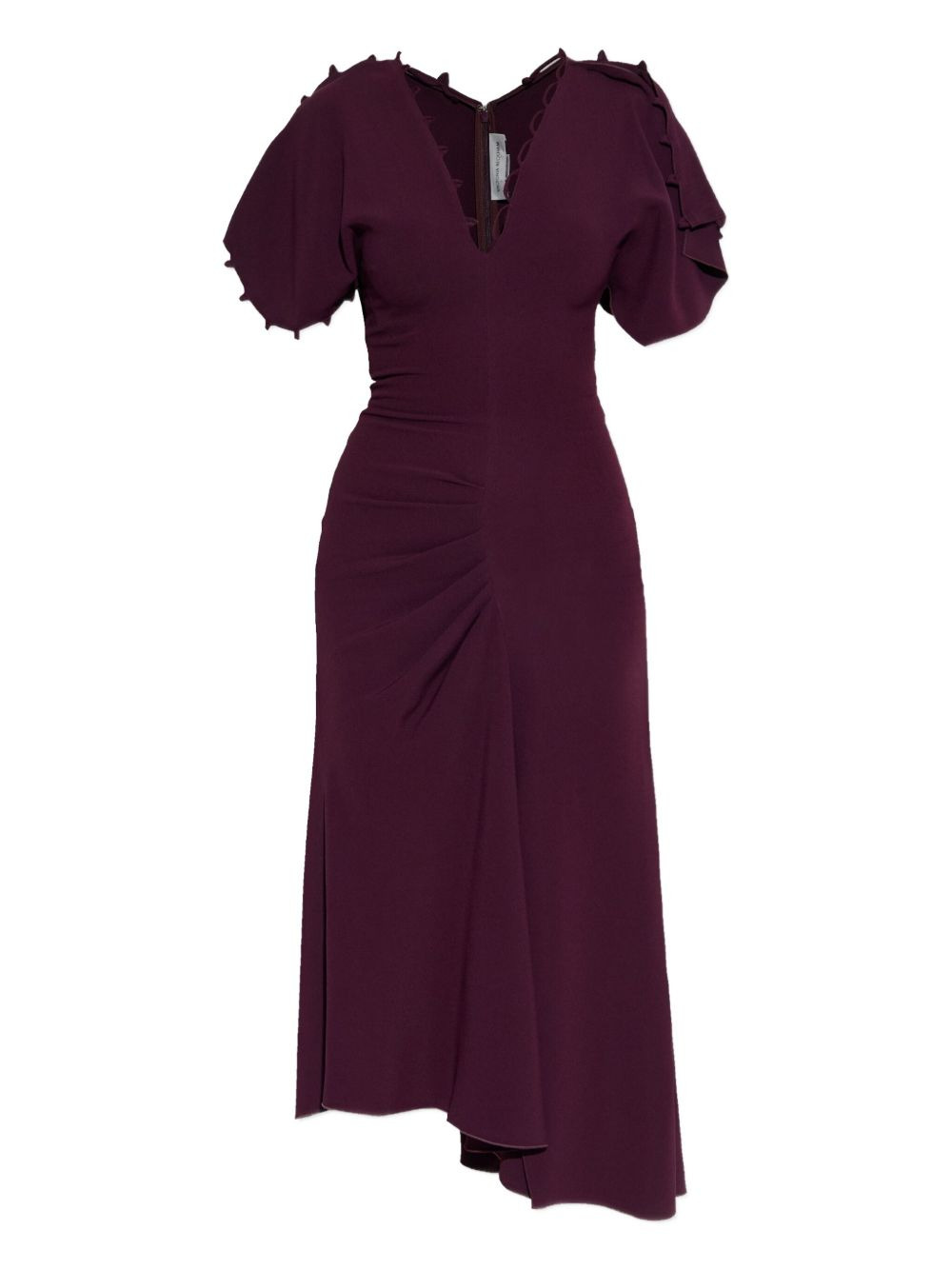 ruffled-sleeve asymmetric midi dress