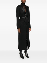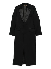 shawl-lapel slit coat Highlights - Black - Shawl lapel - Front slit - Long sleeves - Flap pockets Imported Composition Outer: Polyester 55%, Virgin Wool 45% Lining: Viscose 100%, Cotton 70%, Polyamide 30% SIZE & FIT Model measurements Height 5 ft 10 in(1.78 m) Bust/Chest 31.49 in(80 cm) Hips 37 in(94 cm) Waist 23.62 in(60 cm) Washing instructions Dry Clean Only