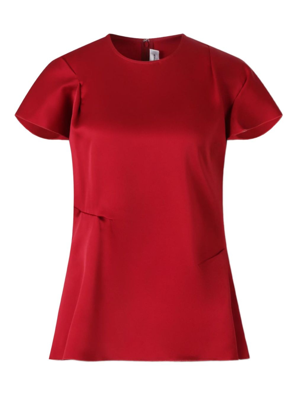 short-sleeve top Highlights - Red - Short sleeves - Flared hem - Round neck - Concealed zip fastening Imported Composition Acetate 71%, Viscose 29% Washing instructions Dry Clean Only
