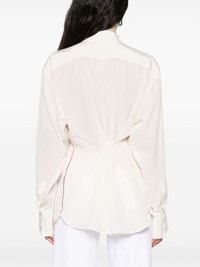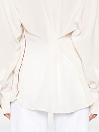 silk blouse Highlights - White - Button-down collar - Long sleeves - Ruffled detailing - Gathered detailing Imported Composition Silk 100% SIZE & FIT Model measurements Height 5 ft 9 in(1.75 m) Bust/Chest 32.67 in(83 cm) Hips 36.22 in(92 cm) Waist 24.8 in(63 cm) FittingInformation Designed for a slim fit that sits just away from the body offering a close yet comfortable fit Made from a lightweight non-stretch fabric Washing instructions Dry Clean Only