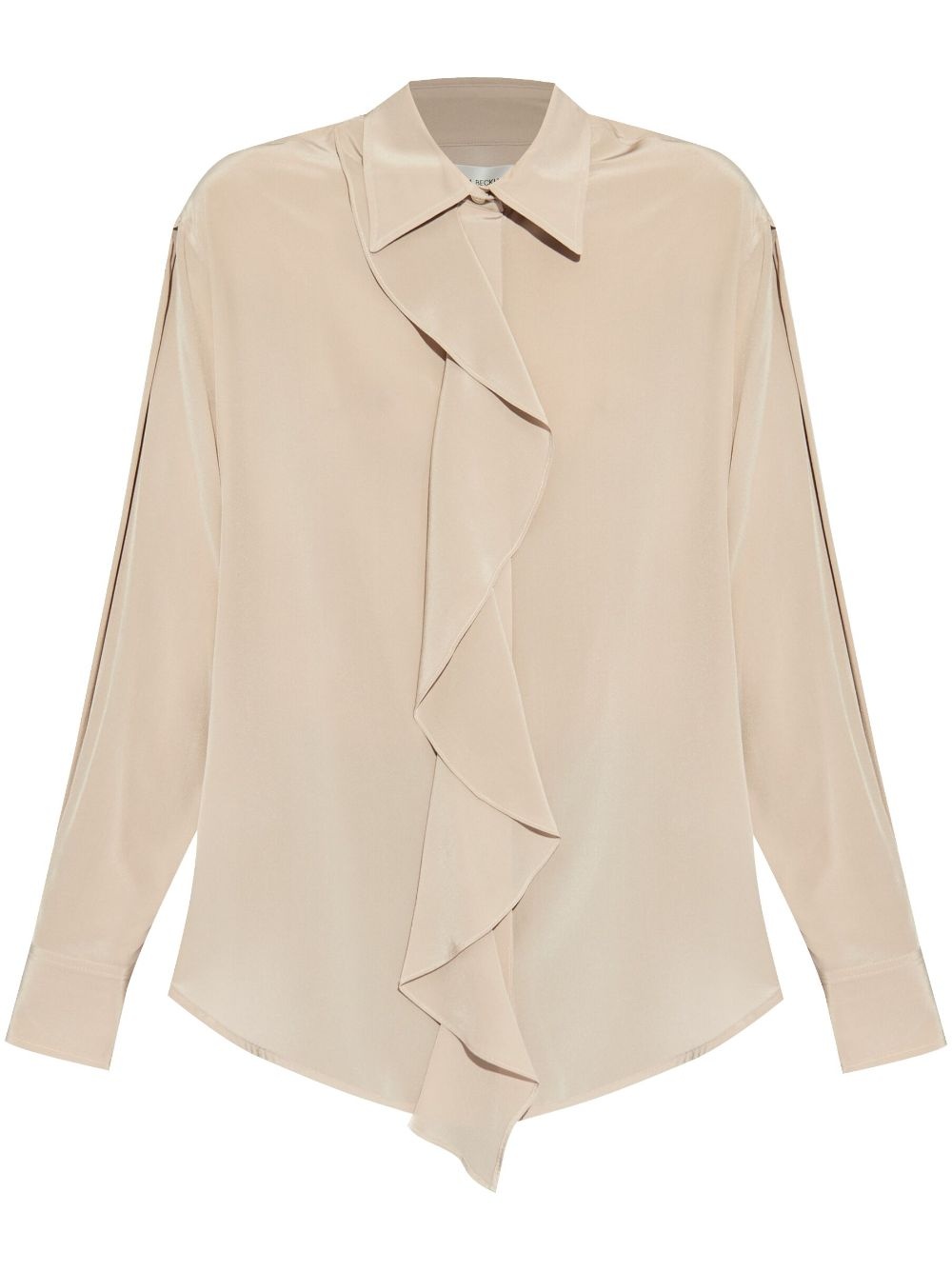 silk shirt Highlights - Beige - Concealed front button fastening - Buttoned cuffs - Ruffled detailing - Straight-point collar Imported Composition Silk 100%