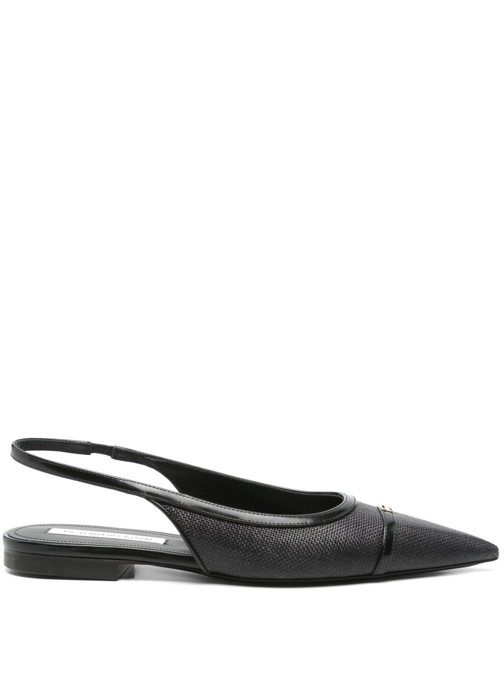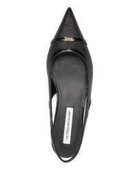 slingback pumps Highlights - Black - Elasticated slingback strap - Logo plaque - Pointed toe - Flat sole Made in Italy Composition Outer: Calf Leather 100%, Canvas 100% Lining: Calf Leather 100% Sole: Calf Leather 100%