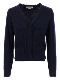 stepped-hem ribbed cardigan Highlights - Navy blue - Ribbed texture - V-neck - Front button closure - Front pockets - Long cuffed sleeves Imported Composition Wool 70%, Cashmere 30% Washing instructions Read Manufacturer Guidelines