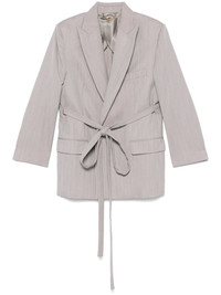 tailored belted blazer Highlights - Light purple - Concealed front button fastening - Chest welt pocket - Two front flap pockets - Shoulder pads Imported Composition Lining: Viscose 100%, Cotton 70%, Polyamide 30% Outer: Virgin Wool 100% SIZE & FIT Model measurements Height 5 ft 10 in(1.78 m) Bust/Chest 33.85 in(86 cm) Hips 36.61 in(93 cm) Waist 26.77 in(68 cm) FittingInformation Designed to be unstructured, offering a loose fit throughout The tie fastening gives an adaptable and personalised fit Made from a midweight non-stretch fabric Washing instructions Dry Clean Only