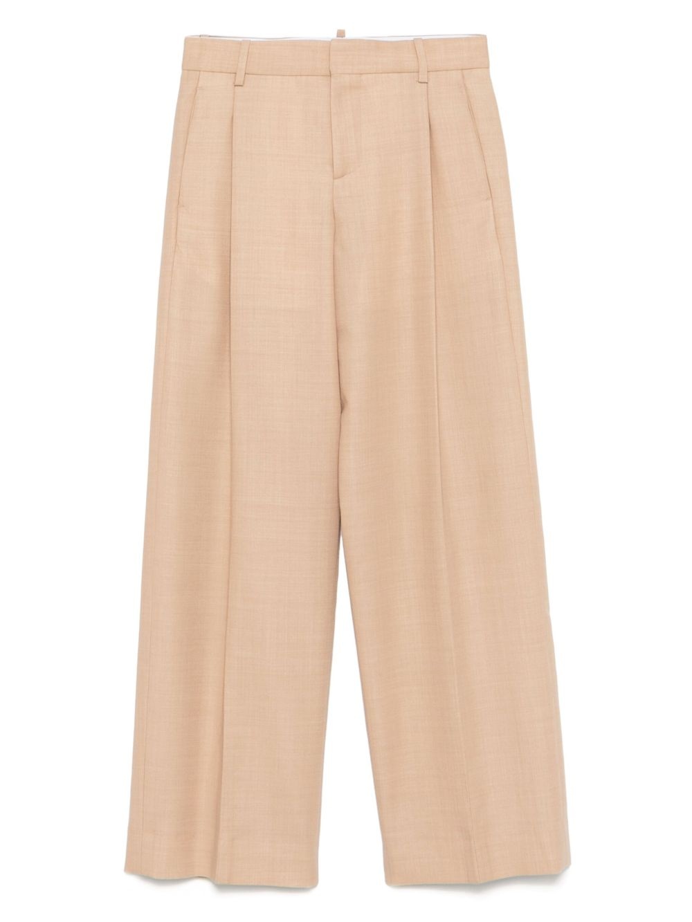 tailored trousers Highlights - Beige - Concealed front fastening - Front pleats - Tailored silhouette - Side pockets - Back welt pockets - Belt loops Imported Composition Lining: Viscose 100% Outer: Virgin Wool 99%, Polyester 34%, Acetate 8%, Cupro 3%, Polyamide 1% SIZE & FIT Model measurements Height 5 ft 11 in(1.8 m) Bust/Chest 31.49 in(80 cm) Hips 36.61 in(93 cm) Waist 24.4 in(62 cm) FittingInformation Designed with a wide-leg cut, these trousers allow for a close fit at the waist and offer a loose and roomy fit over the leg Made from a midweight non-stretch fabric