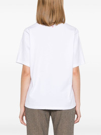 text-print T-shirt Highlights - White - Organic cotton - Lightweight jersey - Text print - Crew neck - Short sleeves - Straight hem Imported Composition Organic Cotton 100% SIZE & FIT Model measurements Height 5 ft 9 in(1.75 m) Bust/Chest 31.88 in(81 cm) Hips 34.64 in(88 cm) Waist 24.01 in(61 cm) Measurement SLEEVE LENGTH 9.44 in(24 cm) LENGTH 24.01 in(61 cm) BUST 44.09 in(112 cm) Shoulder Width 18.11 in(46 cm) FittingInformation Designed for a relaxed fit, this piece allows for comfort and movement when worn Made from a midweight non-stretch fabric, this piece offers minimal elasticity when worn Washing instructions Machine Wash