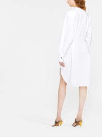 tie-waist cotton dress Crafted in a bright white cotton construction, this shirt-style dress by Victoria Beckham showcases a laid-back collarless silhouette. A tied waist adds an elegant touch to the casual piece. Highlights - Ecru - Cotton - Round neck - Long sleeves - Front button fastening - Tied waist - Curved hem Made in Italy Composition Cotton 100%, Polyester 100% SIZE & FIT Model measurements Height 5 ft 10 in(1.78 m) Bust/Chest 31.49 in(80 cm) Hips 35.43 in(90 cm) Waist 24.4 in(62 cm) FittingInformation This piece fits true to size. We recommend you get your regular size Cut for a loose fit. Comes with an adjustable belt for a flexible fit at the waist Made with a mid-weight non-stretch fabric Washing instructions Machine Wash