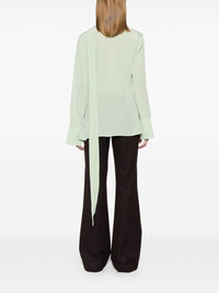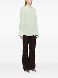 twist-detail blouse Highlights - Light green - Silk - Crepe de chine - Twist detailing - Concealed zip fastening at the shoulder - Crew neck - Sash detail - Long sleeves - Split cuffs - Draped detailing to the front - Straight hem Imported Composition Silk 100% SIZE & FIT Model measurements Height 5 ft 9 in(1.75 m) Bust/Chest 31.88 in(81 cm) Hips 34.64 in(88 cm) Waist 24.01 in(61 cm) FittingInformation Designed for a relaxed fit, this piece allows for comfort and movement when worn Constructed with additional length on the sleeve Made from a lightweight non-stretch fabric