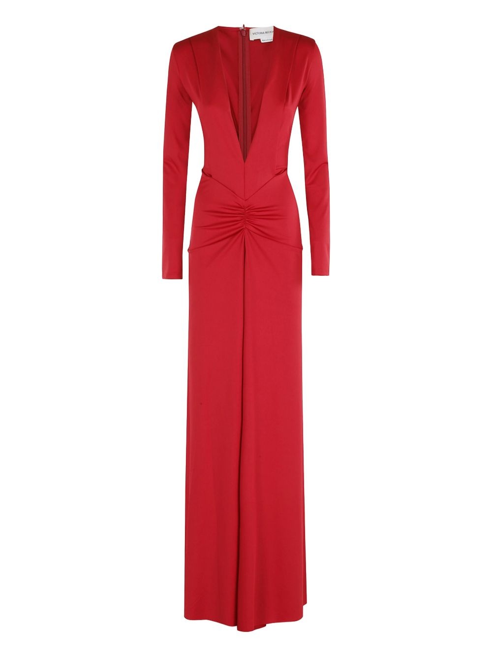 v-neck dress Highlights - Red - V-neck - Long sleeves - Pleat detail - Rear zip fastening Imported Composition Polyester 90%, Elastane 10% Washing instructions Dry Clean Only