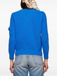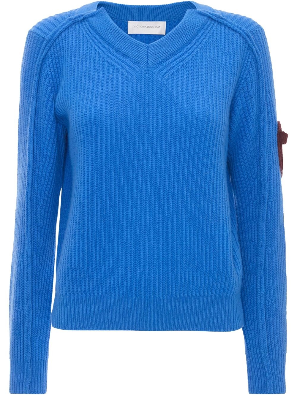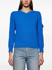 V-neck knitted sweater Highlights - Blue - Applique detailing - V-neck - Long sleeves - Ribbed-knit edge Imported Composition Wool 70%, Cashmere 30% Washing instructions Read Manufacturer Guidelines