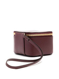 micro Vanity clutch bag Highlights - Burgundy purple - Calf leather - Textured finish - All-around zip fastening - Wrist strap - Logo stamp to the front - Suede lining - Main compartment Made in Italy Composition Calf Leather 100% SIZE & FIT Model measurements Height 5 ft 10 in(1.77 m) Bust/Chest 31.49 in(80 cm) Hips 35.43 in(90 cm) Waist 25.19 in(64 cm) Measurement DEPTH 3.14 in(8 cm) HEIGHT 2.55 in(6.5 cm) WIDTH 3.54 in(9 cm)