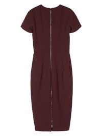 wool-crepe midi dress Highlights - Mahogany - Wool crepe - Stretch-design - Lined bodice - Round neck - Short sleeves - Dart detailing - Straight hem - Partial lining - Mid-length - Rear two-way zip fastening Imported Composition Outer: Polyester 45%, Virgin Wool 36%, Polyamide 16%, Elastane 3% Lining: Polyester 100%