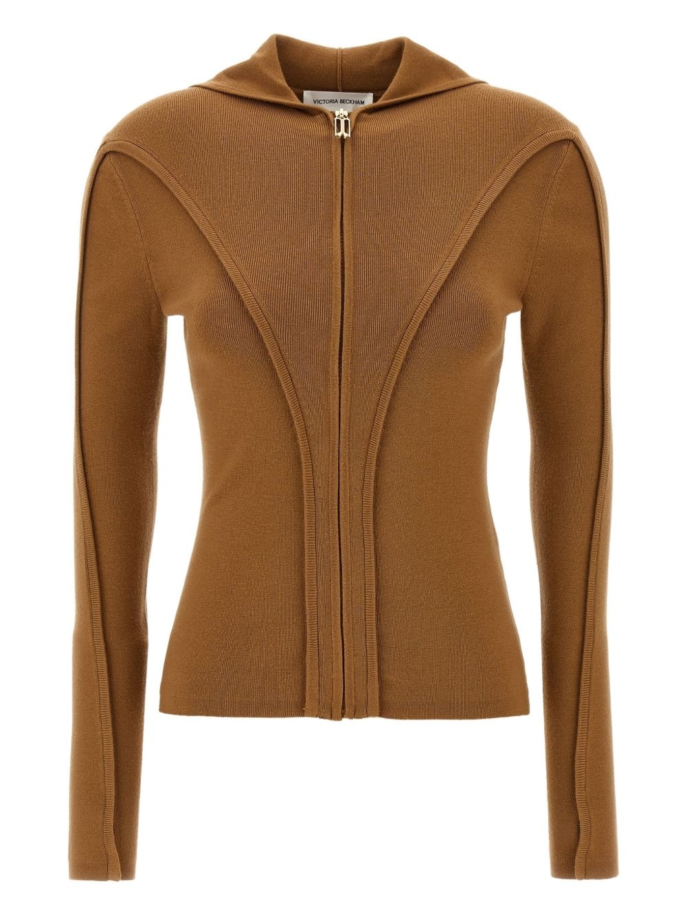 zip-front hoodie Highlights - Camel - Hooded neckline - Zip front fastening - Ribbed knit - Seam detail Imported Composition Merino 82%, Nylon 16%, Elastane 2% Washing instructions Read Manufacturer Guidelines