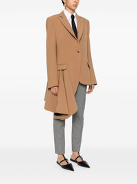 asymmetric blazer Highlights - Caramel brown - Asymmetric design - Front button fastening - Peak lapels - Shoulder pads - Long sleeves - Buttoned cuffs - Chest welt pocket - Front flap pockets - Ruffle and asymmetric hem - Logo-jacquard lining Imported Composition Polyester 52%, Wool 43%, Elastane 5% SIZE & FIT Model measurements Height 5 ft 9 in(1.76 m) Bust/Chest 31.88 in(81 cm) Hips 35.43 in(90 cm) Waist 24.8 in(63 cm) FittingInformation Designed to be unstructured, offering a loose fit throughout The internal shoulder pads offer a structured shape This piece fits true to size – take your usual size Washing instructions Dry Clean Only