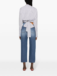 cropped wrap striped shirt Highlights - Anthracite grey - White - Poplin texture - Multi-way stripe pattern - Inverted pleat - Classic collar - Front button fastening - Drop shoulder - Long sleeves - Buttoned cuffs - Rear elasticated waistband - Tied waist - Wrap design - Cropped Imported Composition Nylon 85%, Polyester 15% SIZE & FIT Model measurements Height 5 ft 11 in(1.8 m) Bust/Chest 34.25 in(87 cm) Hips 35.82 in(91 cm) Waist 24.8 in(63 cm) FittingInformation Designed for a loose fit at the chest with a close fit over the waist and hips The belt offers adjustability for fitted preferences Made from a midweight non-stretch fabric This piece fits true to size – take your usual size Washing instructions Dry Clean Only