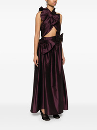 drape bow maxi dress Highlights - Aubergine - Concealed side zip fastening - Halterneck tie fastening - Two side inset pockets - Low back Imported Composition Polyester 69%, Silk 31% SIZE & FIT Model measurements Height 5 ft 10 in(1.78 m) Bust/Chest 32.67 in(83 cm) Hips 35.43 in(90 cm) Waist 23.22 in(59 cm) FittingInformation Designed for a close fit at the chest and waist with a loose fit at the hip Made from a lightweight non-stretch fabric Washing instructions Dry Clean Only