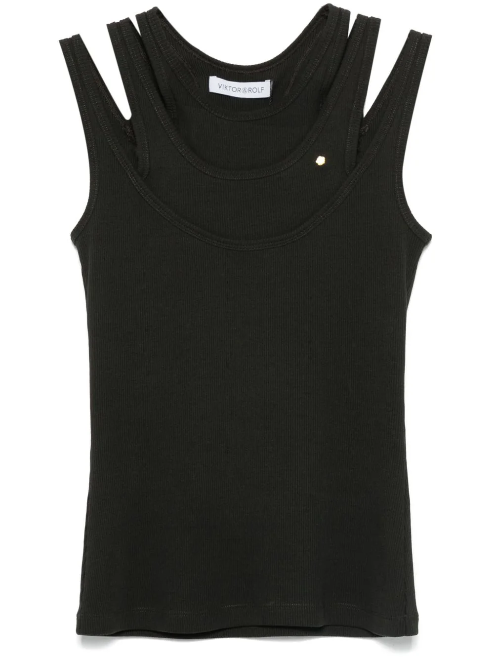 layered tank top Highlights - Black - Cotton - Fine ribbed - Layered details - Crew neck - Sleeveless - Bead-logo detailing - Straight hem Imported Composition Cotton 100% SIZE & FIT Model measurements Height 5 ft 10 in(1.77 m) Bust/Chest 32.28 in(82 cm) Hips 35.03 in(89 cm) Waist 25.19 in(64 cm) FittingInformation Designed for a slim fit that sits just away from the body offering a close yet comfortable fit Made from a midweight non-stretch fabric, this piece offers minimal elasticity when worn Washing instructions Dry Clean Only