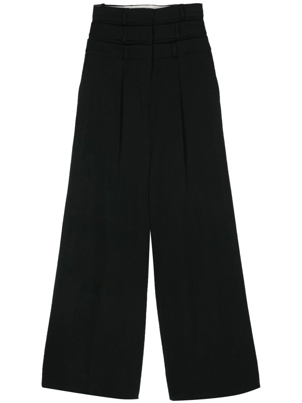 multi-layered trousers Highlights - Black - Wool - Twill weave - Tailored design - Layered waistband - High waist - Belt loops - Two side slash pockets - Front pleat detailing - Full-length - Two rear welt pockets - Straight leg - Front concealed hook and zip fly fastening Imported Composition Wool 100% Washing instructions Dry Clean Only