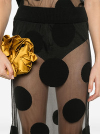 polka-dot midi skirt Highlights - Black - Mesh design - Polka dot embroidery - Semi-sheer construction - Elasticated waistband - Ribbed trim - Unlined - Straight hem - Mid-length Imported Composition Polyamide 70%, Polyester 30% SIZE & FIT Model measurements Height 5 ft 10 in(1.78 m) Bust/Chest 33.85 in(86 cm) Hips 36.61 in(93 cm) Waist 26.77 in(68 cm) FittingInformation This midi-length skirt is intended to be worn just below the waist The elasticated waist allows for a comfortable fit Made with a fine knit, this piece offers some stretch Washing instructions Dry Clean Only