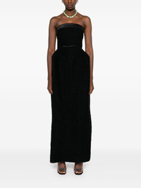 ruffled gown Highlights - Black - Concealed rear zip fastening - Belted waist - Folded edge - Tulip design Imported Composition Polyamide 100% SIZE & FIT Model measurements Height 5 ft 10 in(1.78 m) Bust/Chest 31.49 in(80 cm) Hips 37 in(94 cm) Waist 23.62 in(60 cm) FittingInformation Designed for a close fit at the chest and waist with a loose fit at the hip Made from a midweight non-stretch fabric, this piece offers minimal elasticity when worn Washing instructions Dry Clean Only