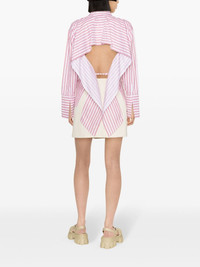 Volant open back striped shirt Highlights - Clay red - White - Poplin texture - Vertical stripe pattern - Classic collar - Open back - Tied waist - Concealed front button fastening - Long sleeves - Buttoned cuffs - Chest patch pocket - High-low hem Imported Composition Nylon 85%, Polyester 15% SIZE & FIT Model measurements Height 5 ft 10 in(1.78 m) Bust/Chest 29.92 in(76 cm) Hips 34.64 in(88 cm) Waist 23.62 in(60 cm) FittingInformation Designed for a relaxed fit, this piece allows for comfort and movement when worn The adjustable tie waist gives a more adaptable and personalised fit Made from a midweight non-stretch fabric This piece fits true to size – take your usual size Washing instructions Dry Clean Only