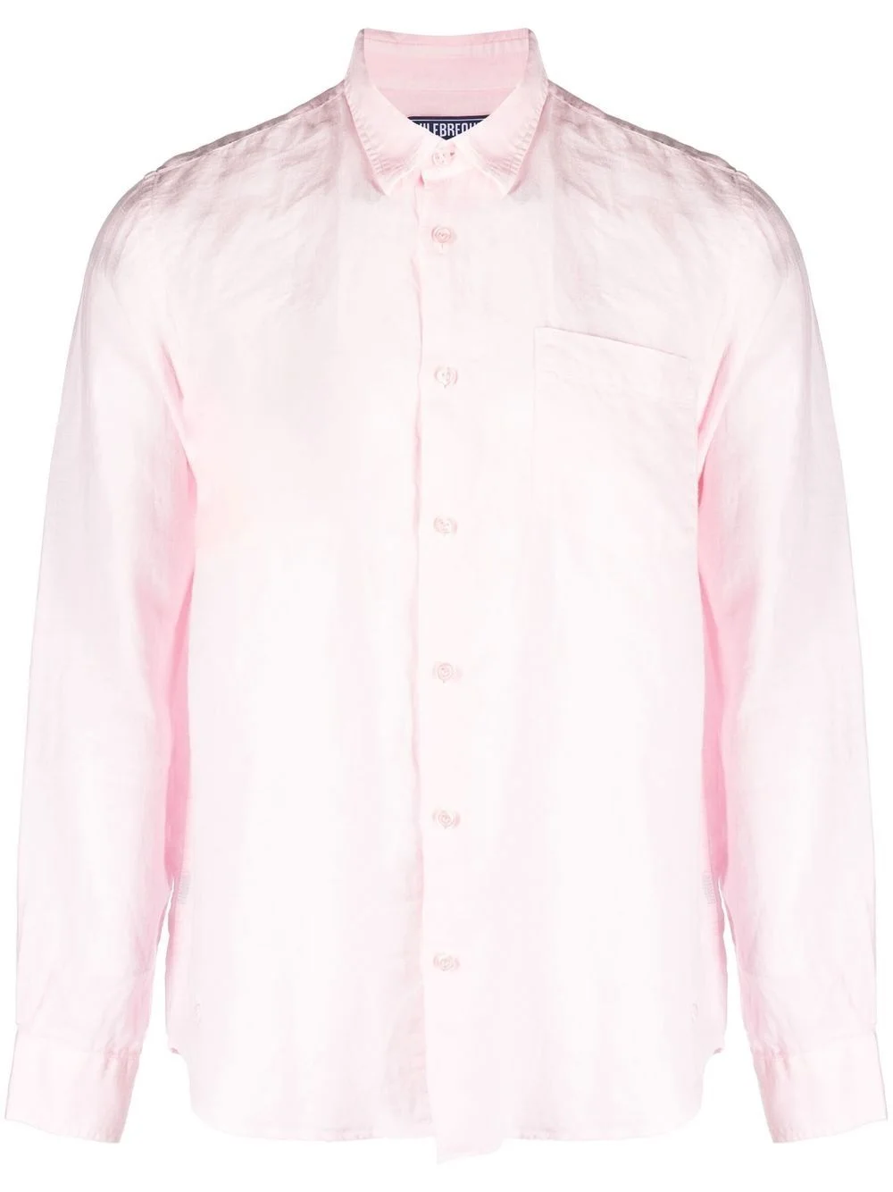 Caroubis long-sleeved linen shirt Highlights - Ballerina pink - Linen - Embroidered logo to the front - Classic collar - Front button fastening - Shirt sleeves - Buttoned cuffs - Chest patch pocket Imported Composition Linen/Flax 100% SIZE & FIT Model measurements Height 6 ft 2 in(1.87 m) Bust/Chest 35.82 in(91 cm) Hips 35.43 in(90 cm) Waist 27.95 in(71 cm) Measurement CHEST 43.3 in(110 cm) SLEEVE LENGTH 35.82 in(91 cm) LENGTH 31.1 in(79 cm) FittingInformation This piece fits true to size. We recommend you get your regular size Classic fit Made with a mid-weight fabric Washing instructions Machine Wash