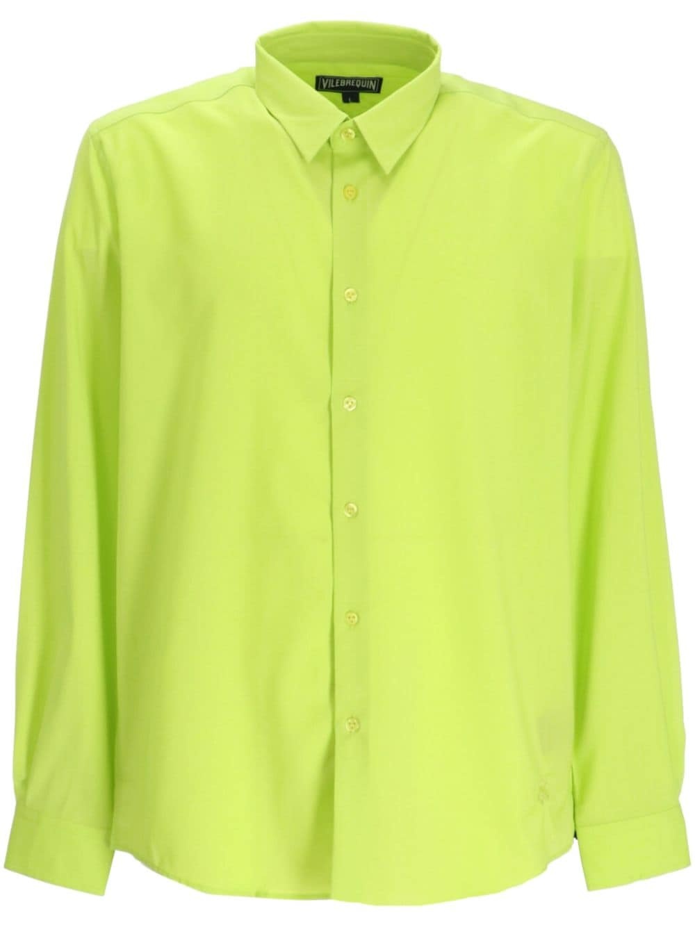 embroidered-logo wool shirt Highlights - Lime green - Wool - Embroidered logo to the side - Classic collar - Front button fastening - Long sleeves - Buttoned cuffs - Curved hem Imported Composition Wool 100%