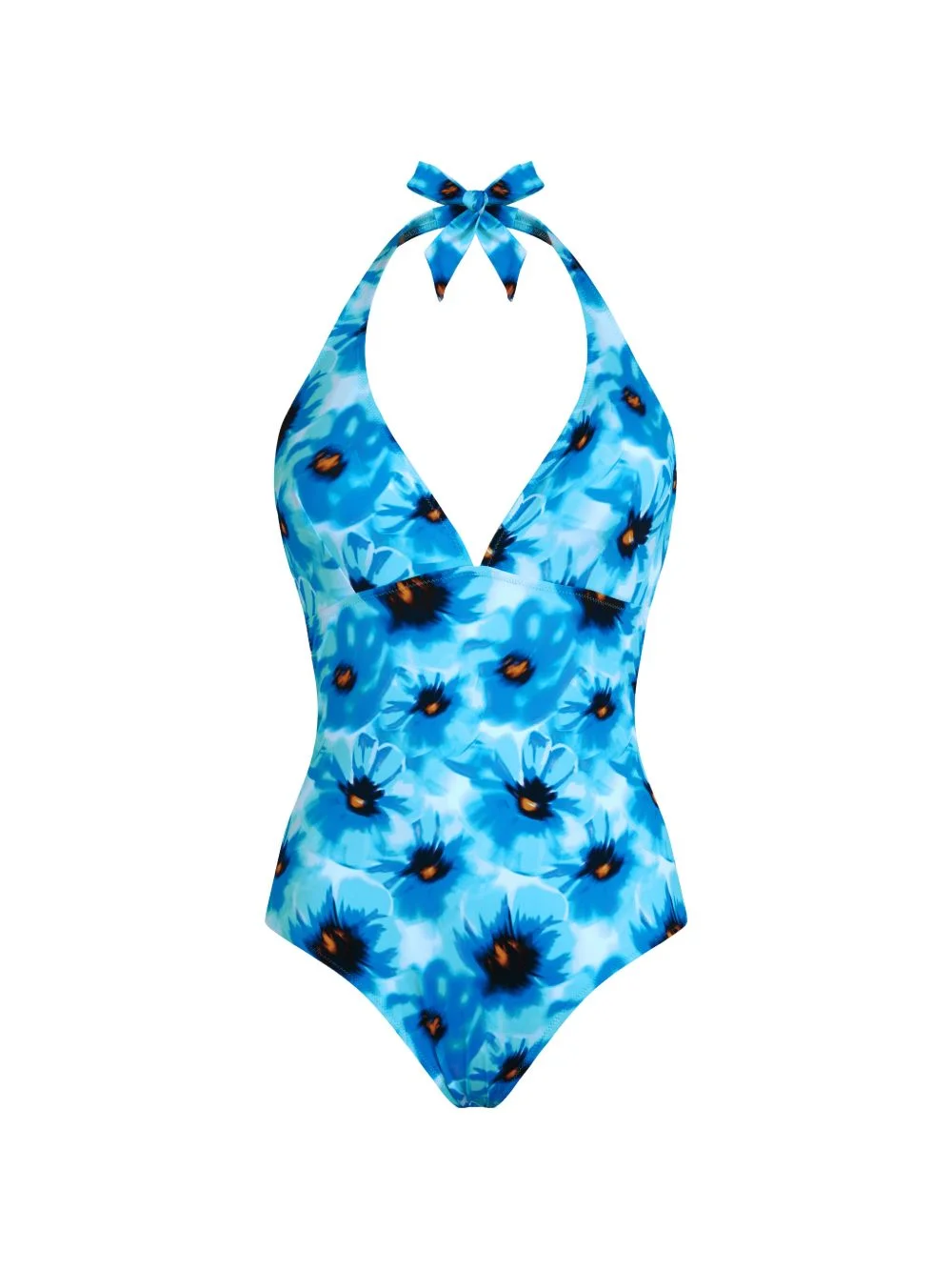 halter-neck low-back swimsuit Highlights - Blue topaz - Floral print - Deep v-neck - Low back - Neck tie fastening - Under cup seams - Be mindful to try on swimwear over your own garments. Imported Composition Recycled Polyamide 82%, Elastane 18% Washing instructions Machine Wash