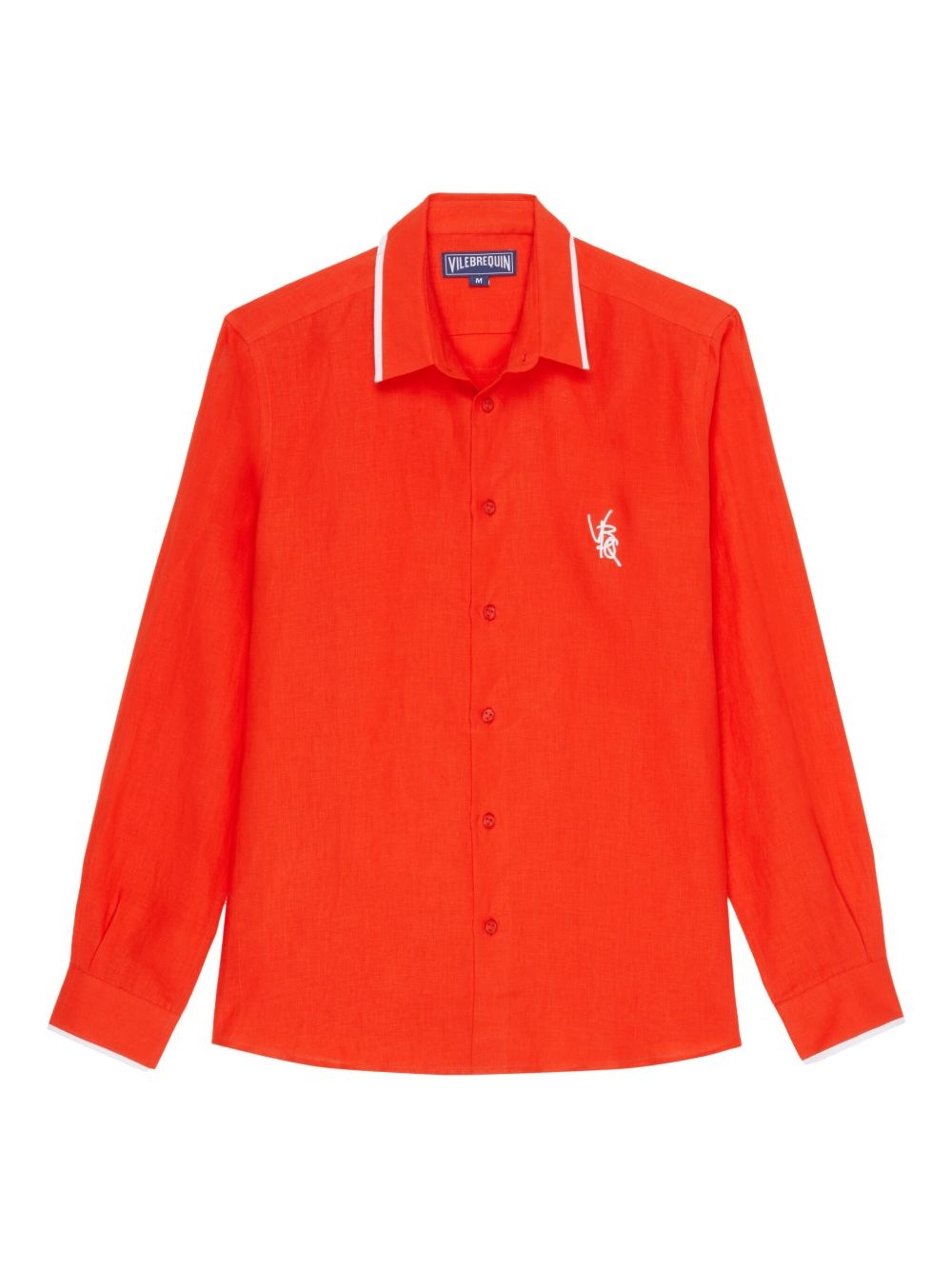 linen shirt Highlights - Poppy red - Front button fastening - Embroidered logo at the chest - Stripe trim Imported Composition Linen/Flax 100%
