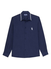 linen shirt Highlights - Navy blue - Front button fastening - Embroidered logo at the chest - Striped edge Imported Composition Linen/Flax 100% Washing instructions Machine Wash