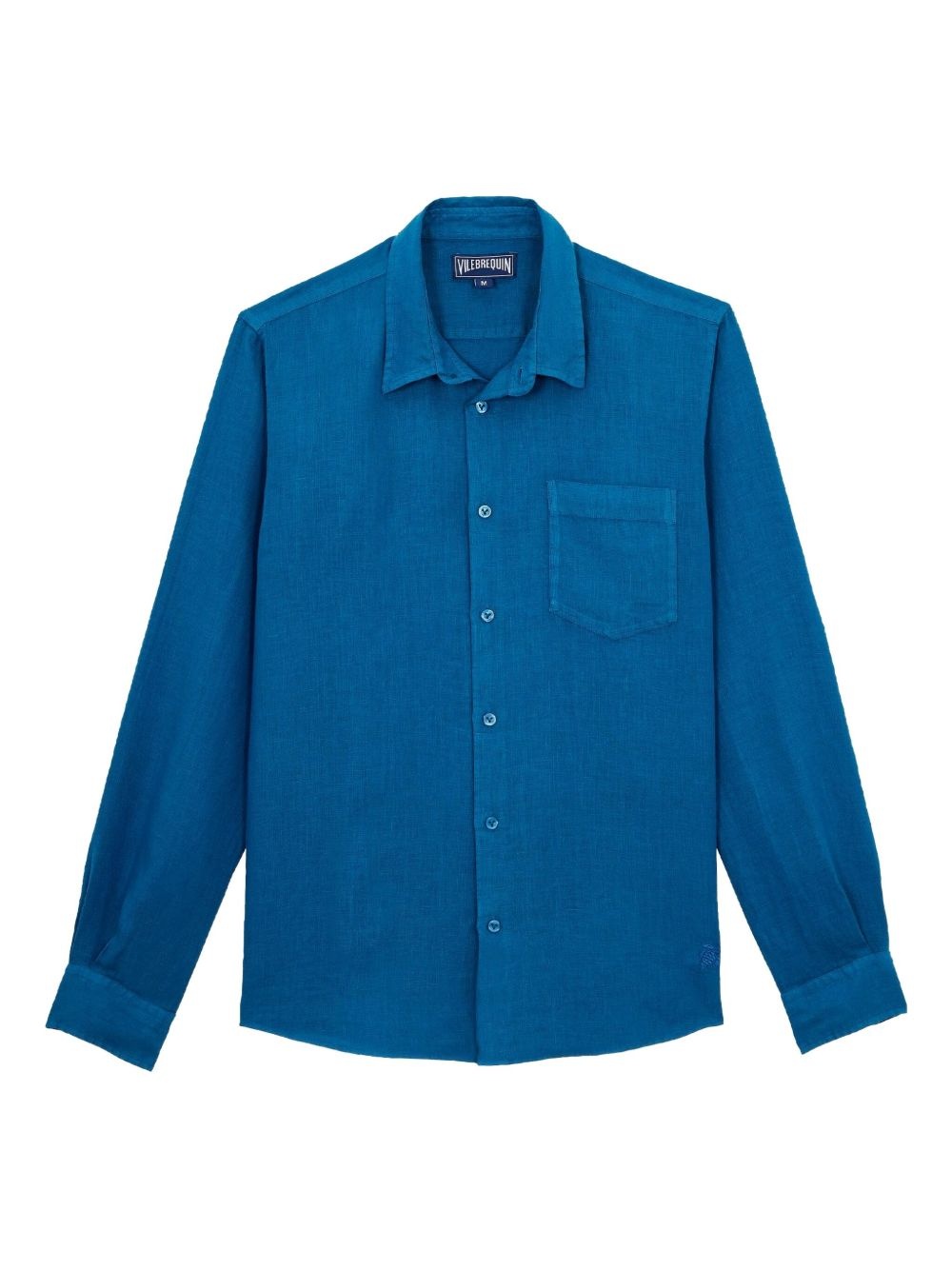 linen shirt Highlights - Blue - Front button fastening - Chest patch pocket - Buttoned cuffs - Curved hem Imported Composition Linen/Flax 100%