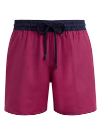 logo-applique swim shorts Highlights - Dark pink/navy blue - Eco wool - Applique logo - Elasticated drawstring waistband - Rear welt pocket - Above-knee length - Be mindful to try on swimwear over your own garments. Imported Composition Eco Wool 100%
