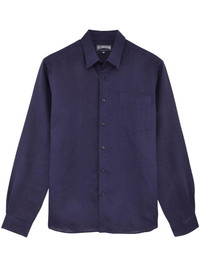 logo-embroidered linen shirt Highlights - Midnight blue - Linen - Classic collar - Long sleeves - Buttoned cuffs - Chest patch pocket - Straight hem - Front button fastening Imported Composition Eco Linen 100%