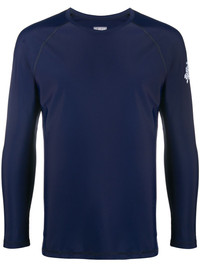long sleeved rashguard top Highlights - Navy blue - Tonal stitching - Round neck - Logo plaque at the arm - Long sleeves - Straight hem - Stretch-fit Imported Composition Polyamide 78%, Spandex/Elastane 22% SIZE & FIT Model measurements Height 6 ft 1 in(1.85 m) Bust/Chest 35.82 in(91 cm) Hips 37.79 in(96 cm) Waist 29.13 in(74 cm) FittingInformation This piece fits true to size. We recommend you get your regular size Cut for a slim fit Made with a mid-weight stretch fabric